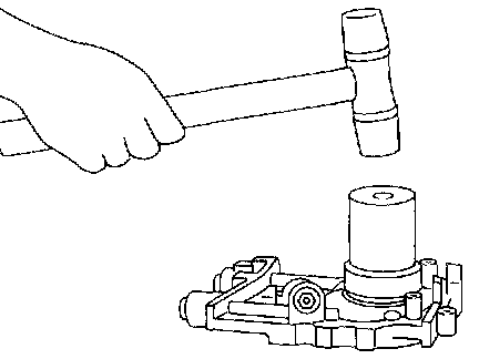 11. While tapping cylinder head with a plastic hammer, separate it from cylinder block.