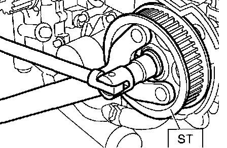 6. Remove camshaft sprocket No. 1 and No. 2. To lock camshaft, use ST.