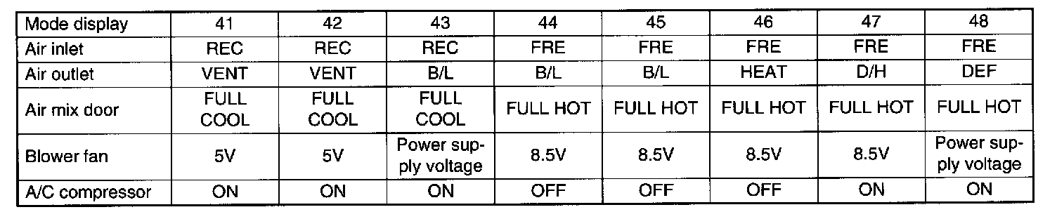 OPERATING MODE TABLE