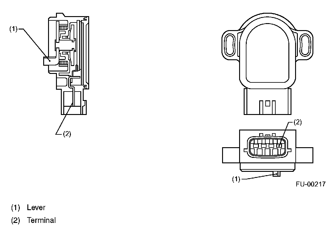 - The throttle position sensor sends the ECM voltage signal corresponding to the opening of the throttle valve. When the sensor's output voltage exceeds a predetermined level, the ECM interprets it as complete closure of the throttle valve. When the output voltage is at another predetermined level, the ECM recognizes that the throttle valve is at a wide open position. Since the output characteristics of the sensor change over years, the ECM is provided with a learning function to be able to interpret signals into throttle valve angles always correctly.