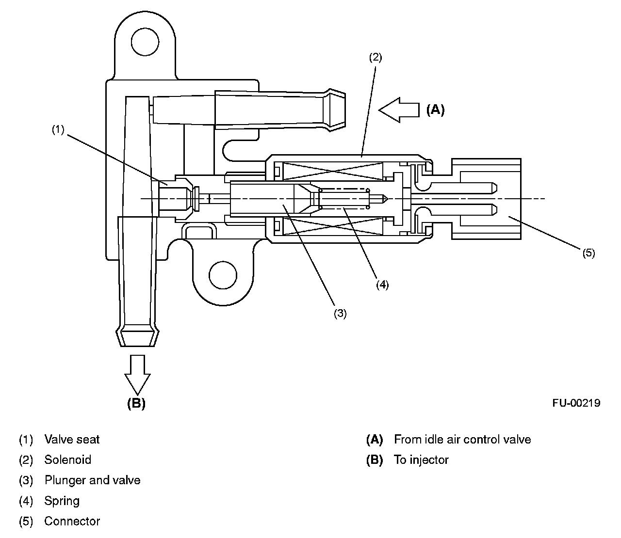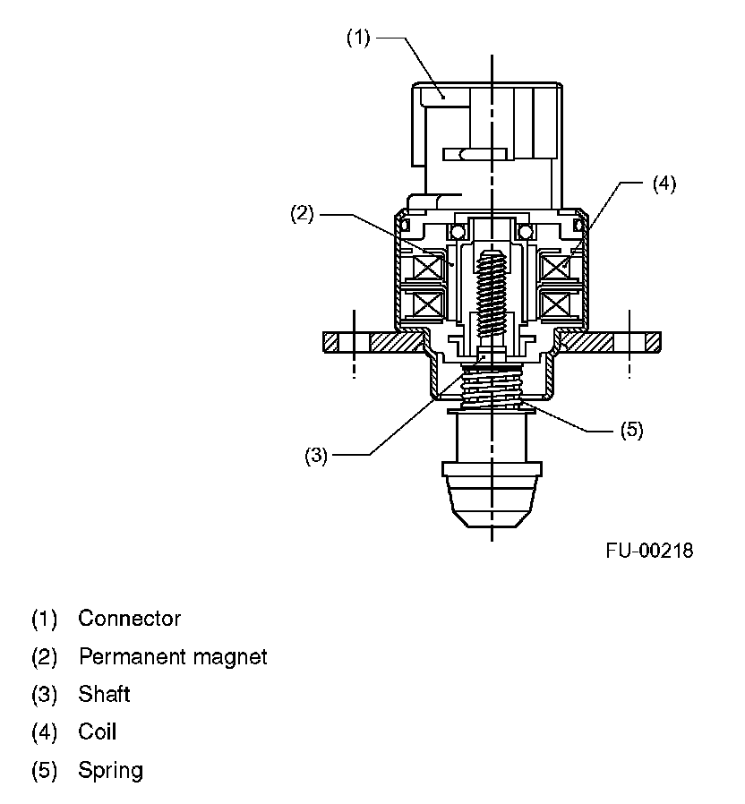 - The idle air control solenoid valve is a stepping motor type solenoid-actuated valve which consists of coils, a shaft, a permanent magnet, a spring and a housing. The housing is an integral part of the throttle body.