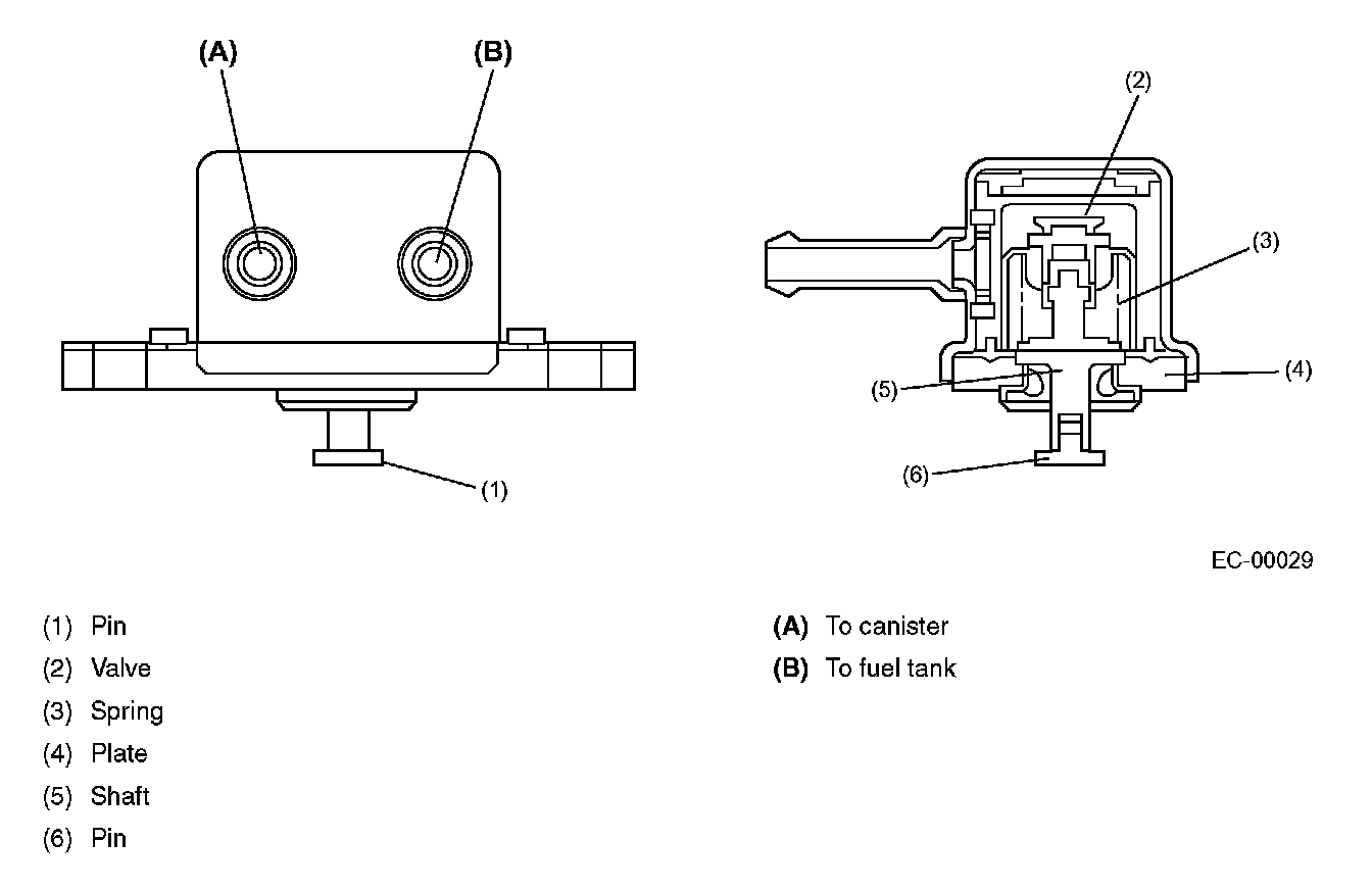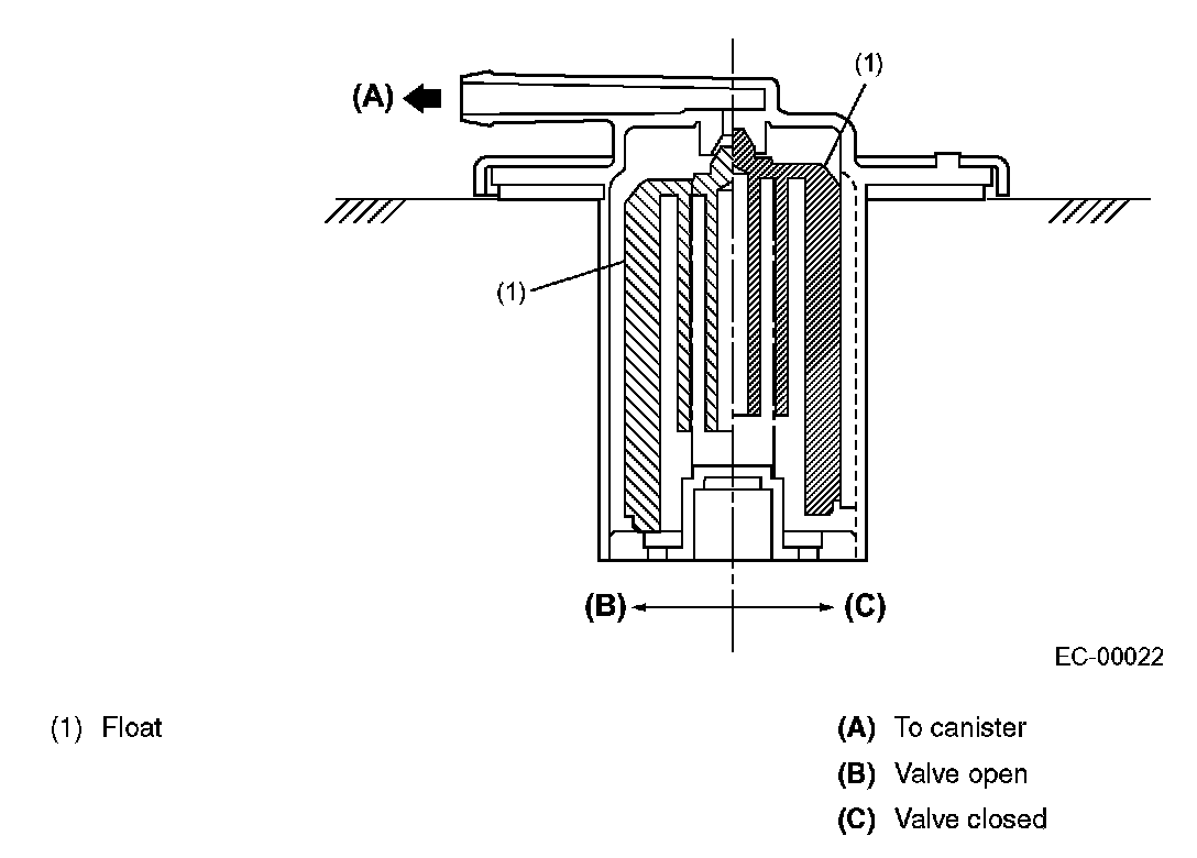 When the tank inside pressure becomes higher than the atmospheric pressure, the valve is opened allowing fuel vapors to be introduced into the canister.