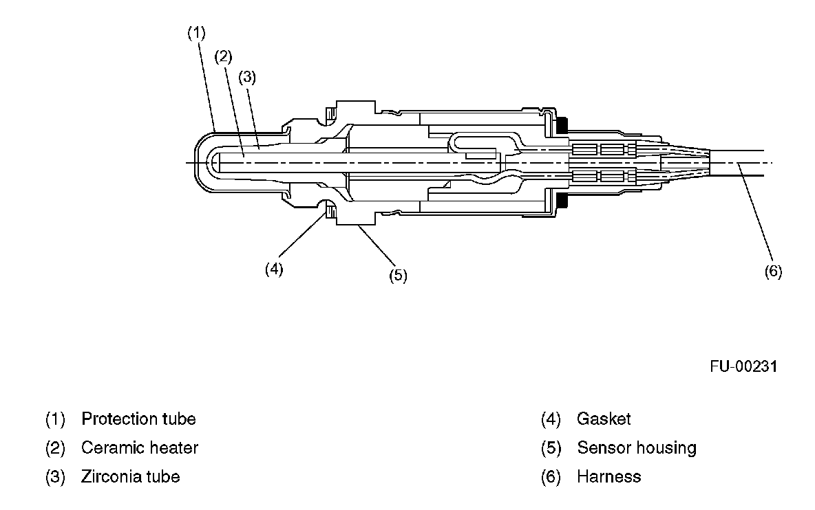- A ceramic heater is employed to improve performance at low temperatures.When rich air-fuel mixture is burnt in the cylinder, the oxygen in the exhaust gases is almost completely used in the catalytic reaction by the platinum coating on the external surface of the zirconia tube. This results in a very large difference in the oxygen ion concentration between the inside and outside of the tube, and the electromotive force generated is large.