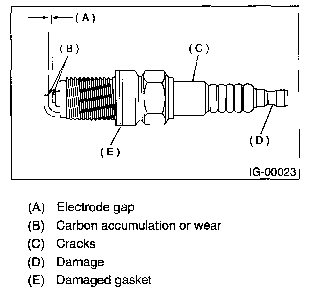 Dry fluffy carbon deposits on insulator and electrode are mostly caused by slow speed driving in city, weak ignition, too rich fuel mixture, dirty air cleaner, etc.