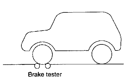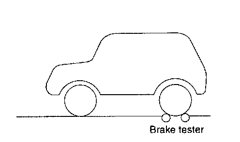 3. Set the front wheels or rear wheels on the brake tester and set the select lever's position at "neutral".