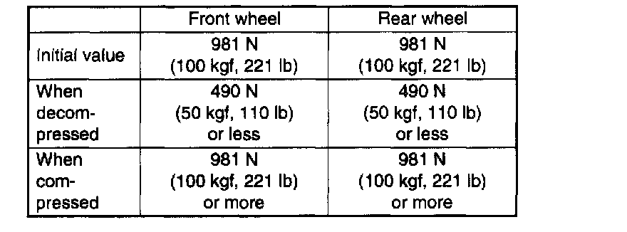 7. Read values indicated on the brake tester and check if the fluctuation of values, when decompressed and compressed, meet the standard values.