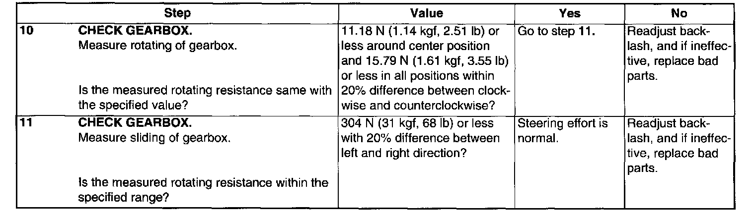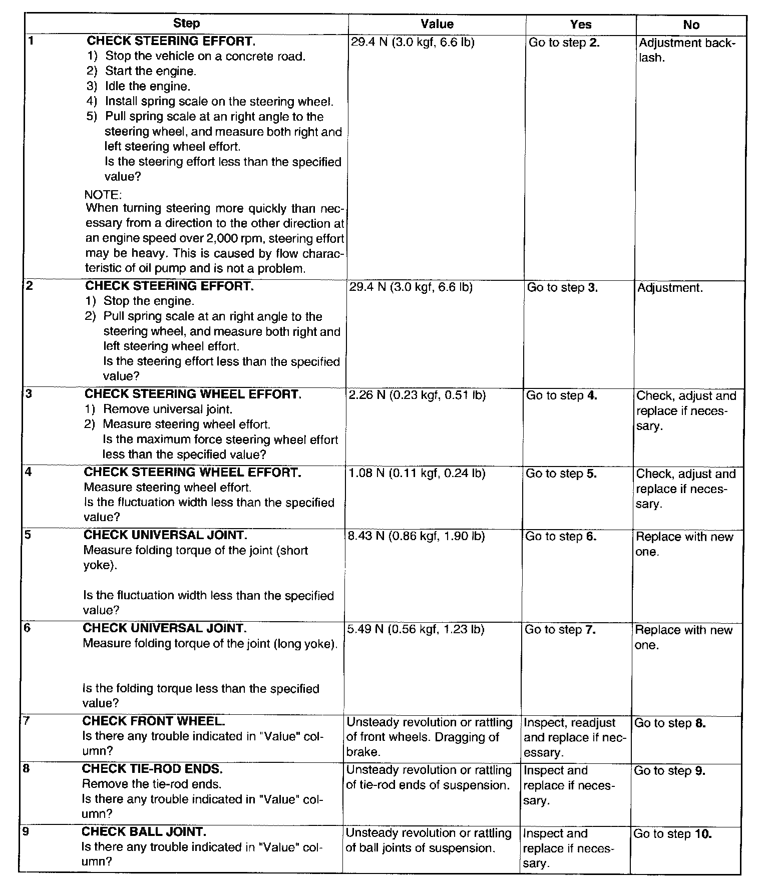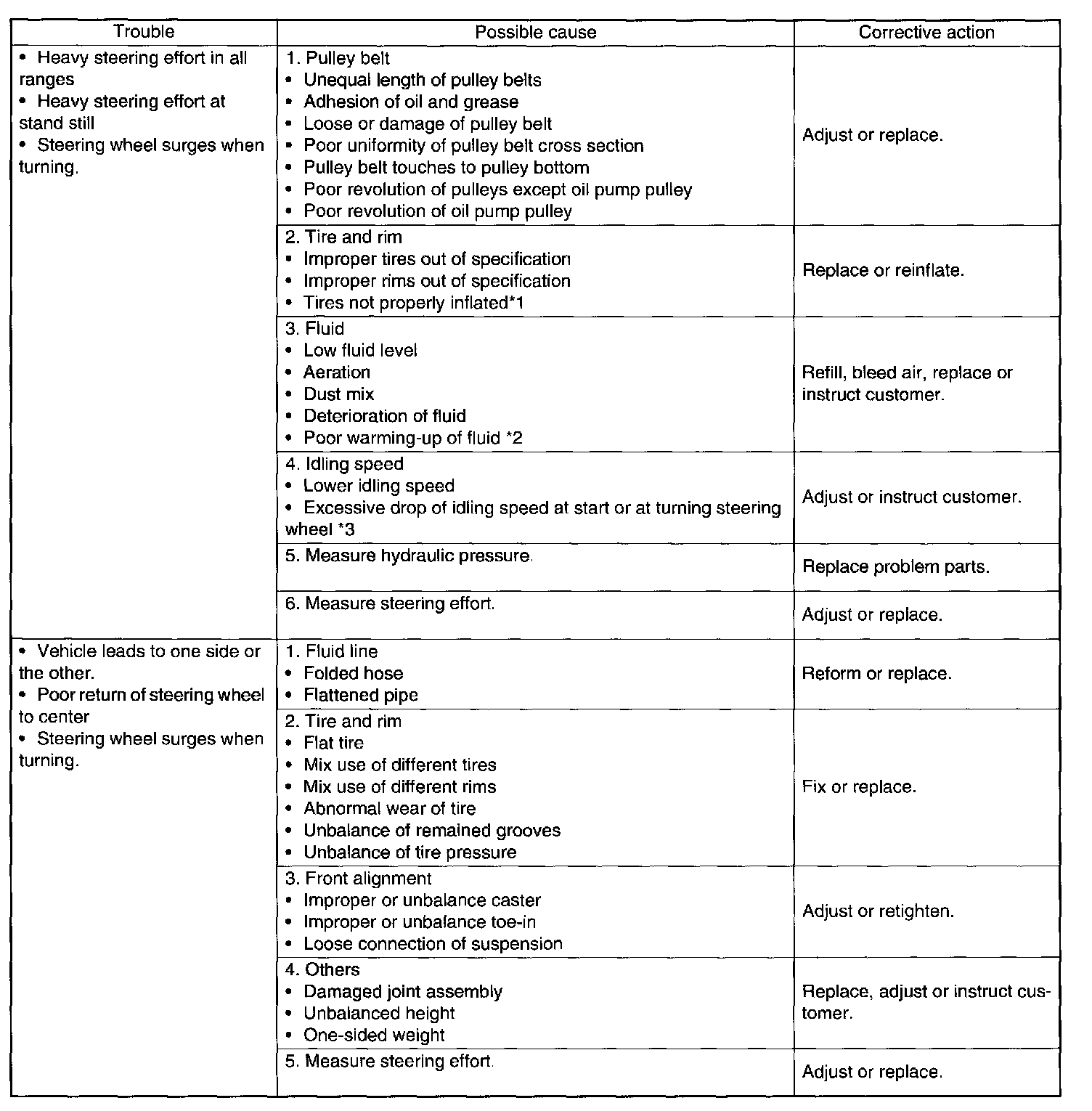 *2 In cold weather, steering effort may be heavy due to increased flow resistance of cold fluid. After warming-up engine, turn steering wheel from stop to stop several times to warm-up fluid. Then if steering effort reduces normally, there is no abnormal thing.