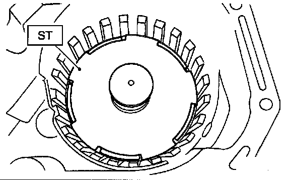 4. Position snap ring in transmission. Using ST, press the snap ring into place.