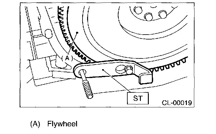 NOTE: Tighten the flywheel installing bolts gradually. Each bolt should be tightened to the specified torque in a crisscross fashion.