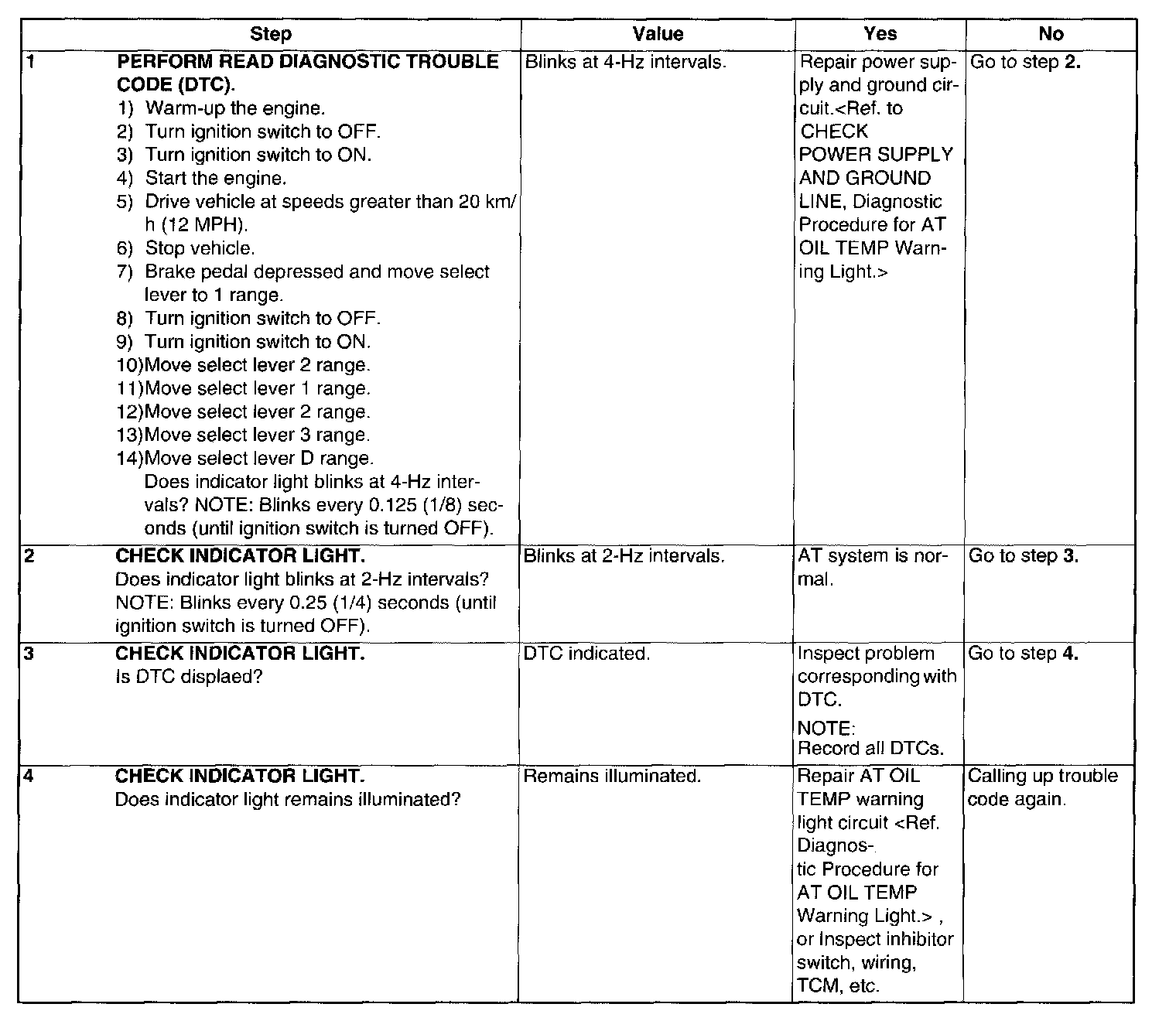 The AT OIL TEMP warning light flashes the code corresponding to the faulty part.