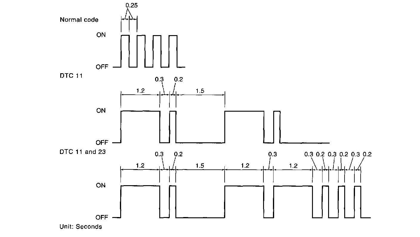 The long segment (1.2 sec on) indicates a "ten", and the short segment (0.2 see on) signifies a "one".