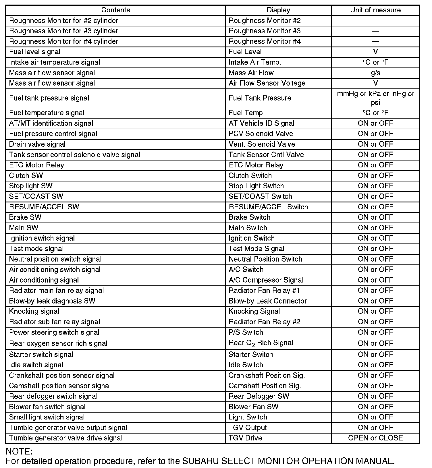 4. READ CURRENT DATA FOR ENGINE. (NORMAL MODE)