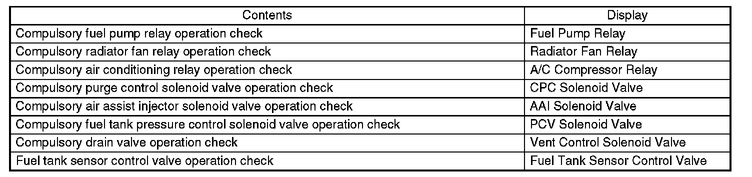 13. Pressing the [NO] key completes the compulsory operation check mode. The display will then return to the Actuator ON/OFF Operation screen.