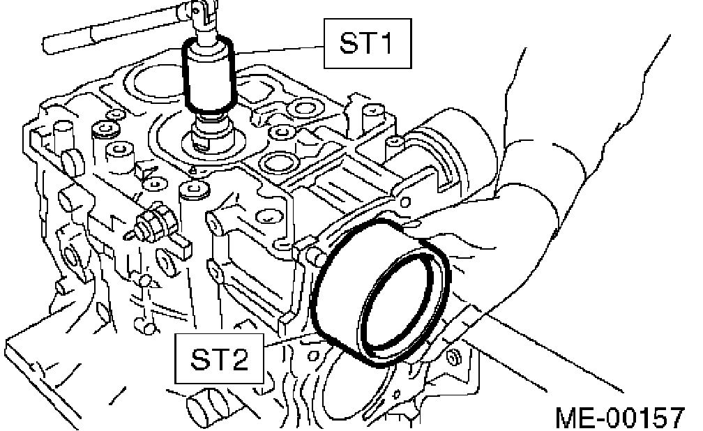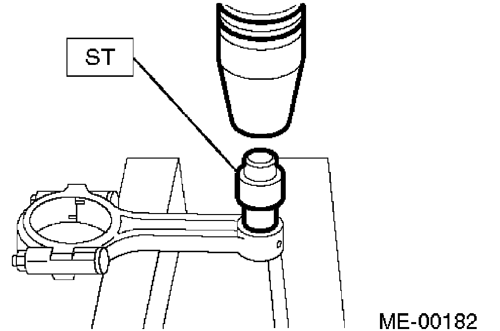 a. Apply a coat of engine oil to ST3, and then insert the ST3 into service hole to align piston pin hole with connecting rod small end.