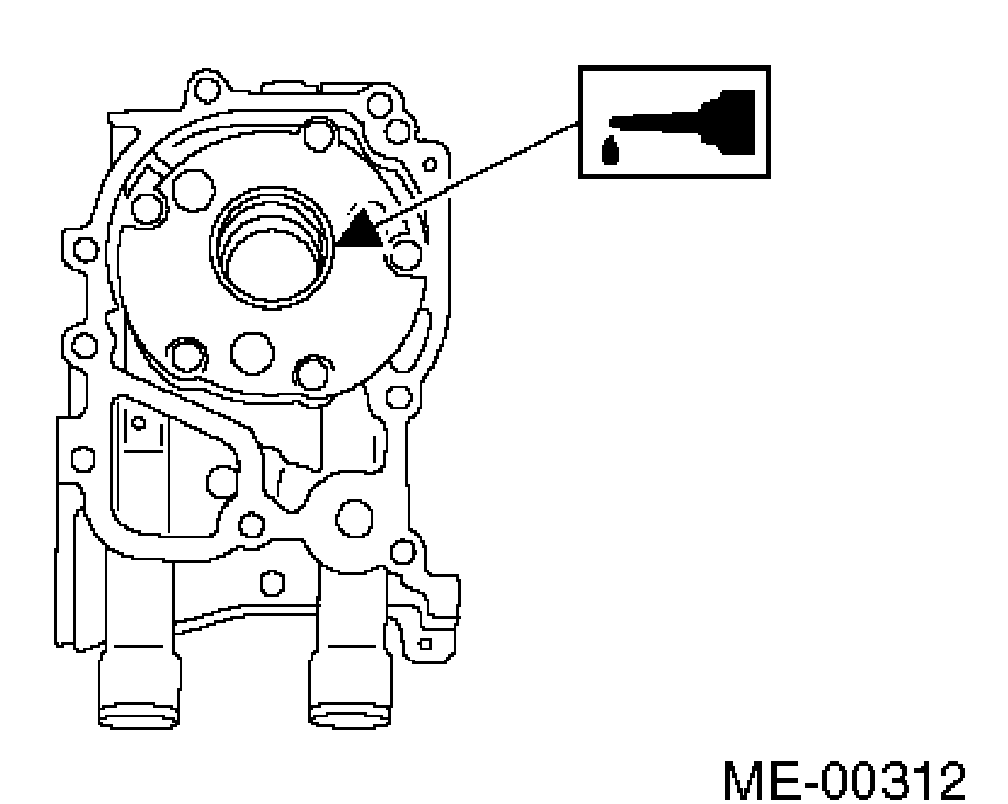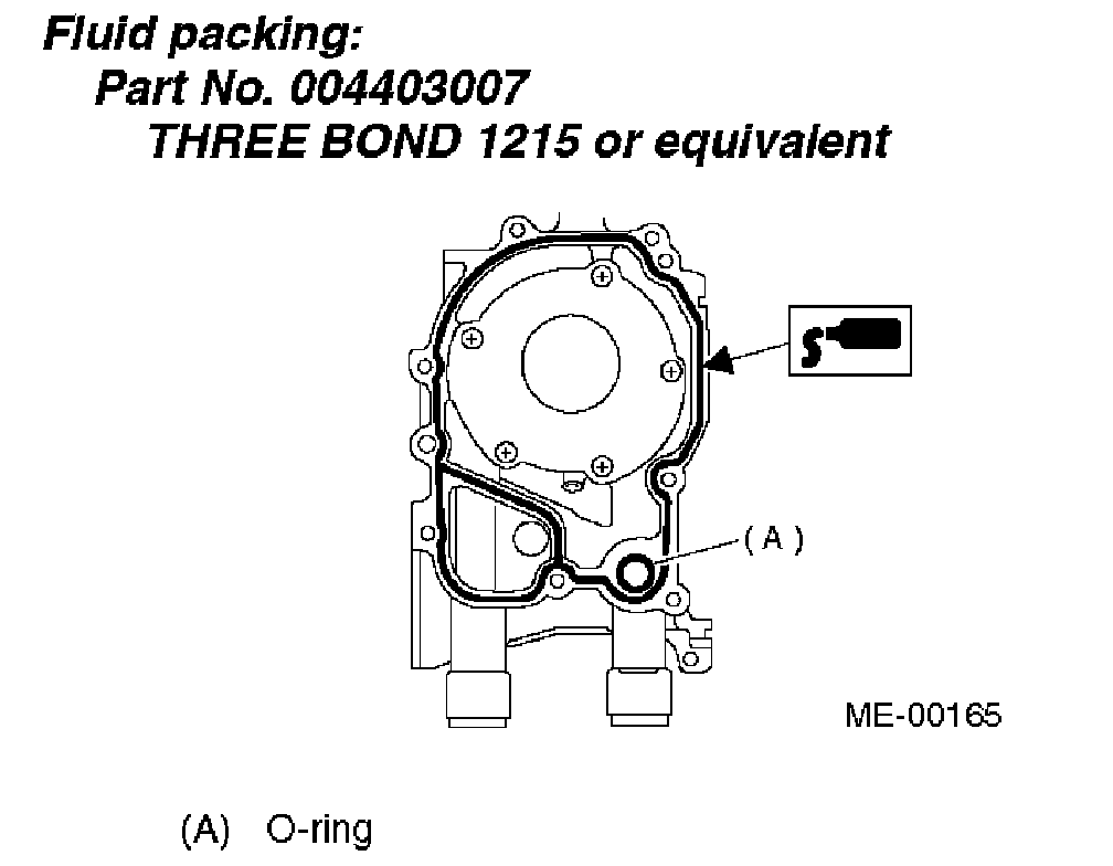 NOTE: Do not allow fluid packing to jut into O-ring grooves, oil passages, bearing grooves, etc.