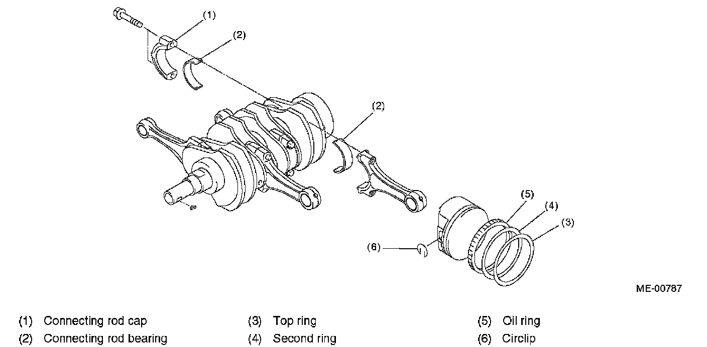 NOTE: Arrange the removed connecting rod, connecting rod cap and bearing in order to prevent confusion.