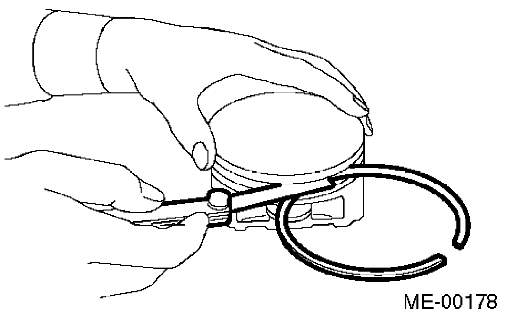 NOTE: Arrange the removed piston rings in proper order to prevent confusion.