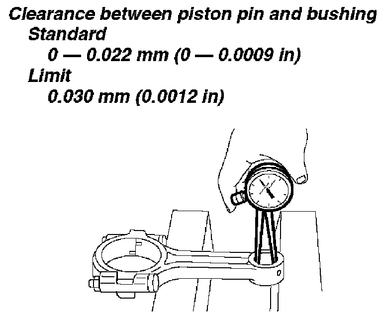 6. Inspect the bushing at connecting rod small end, and replace if worn or damaged. Also measure the piston pin clearance at connecting rod small end.