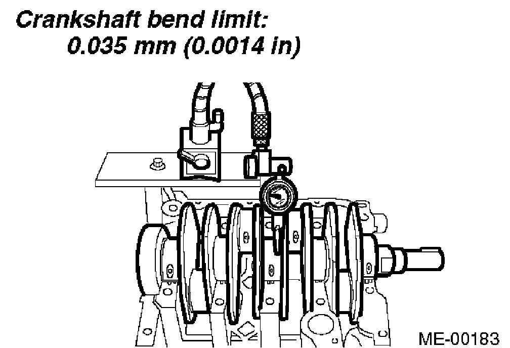 2. Measure the crankshaft bend, and correct or replace if it exceeds the limit.