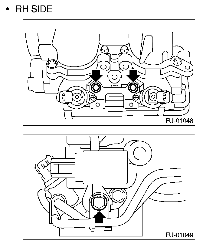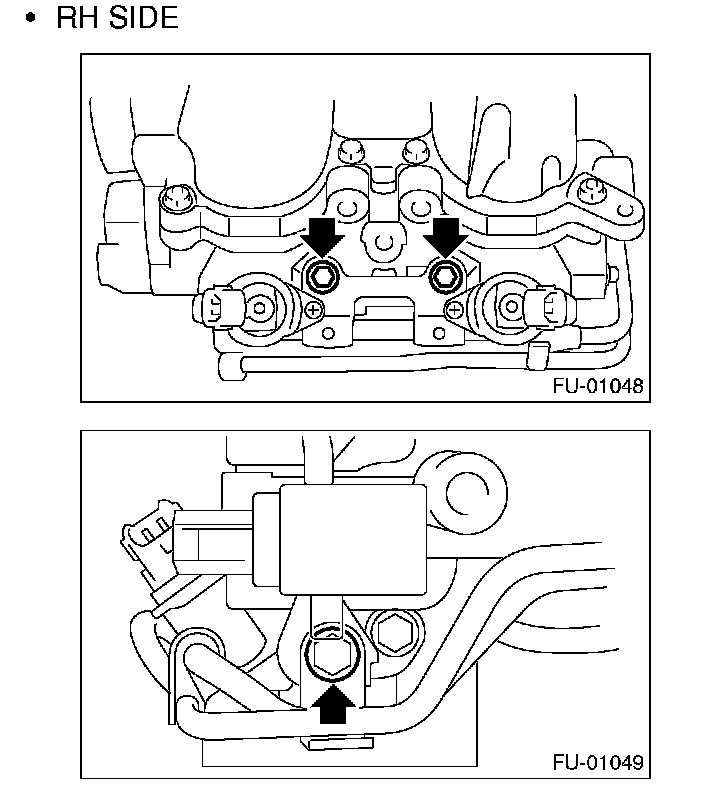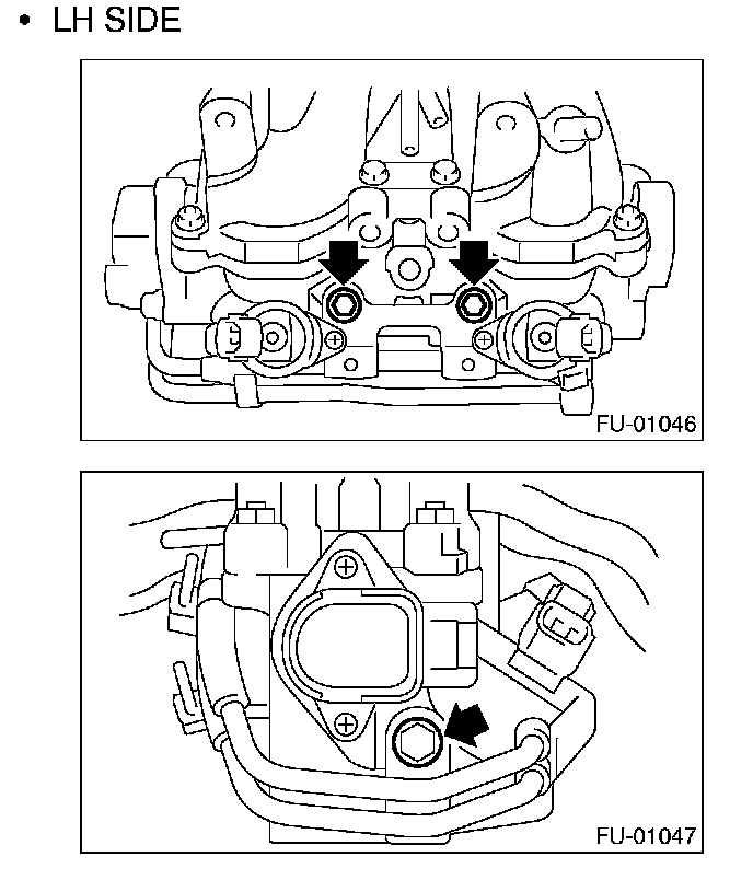 11. Remove the two bolts which hold the fuel pipes on the left side of intake manifold.