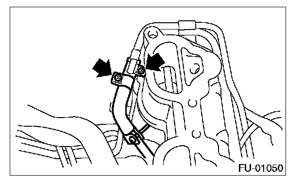 15. Loosen the clamp which holds the front left side fuel hose to injector pipe, and then remove the pipe from clamp.