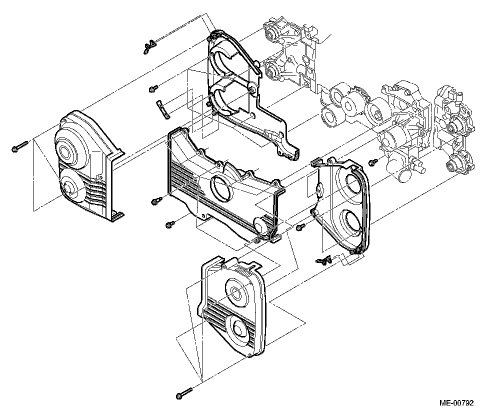 - The belt cover is made of lightweight, heat resistant synthetic resin molding. It constitutes a totally enclosed housing with its cylinder block mating edges sealed with rubber gaskets. This effectively protects the inside components from dust and liquid.