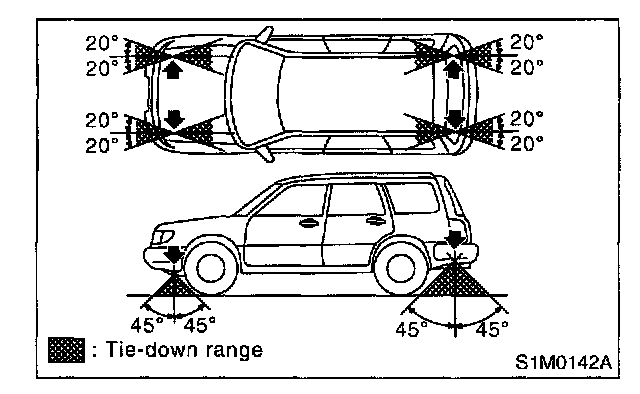 Tie downs are used when transporting vehicles and when using the chassis dynamo. Attach tie downs only to the specified points on the vehicle.