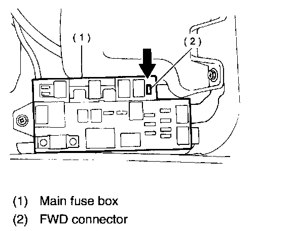 1) In the case of AWD AT vehicles, install a spare fuse with the FWD connector in the main fuse box to simulate FWD vehicles.