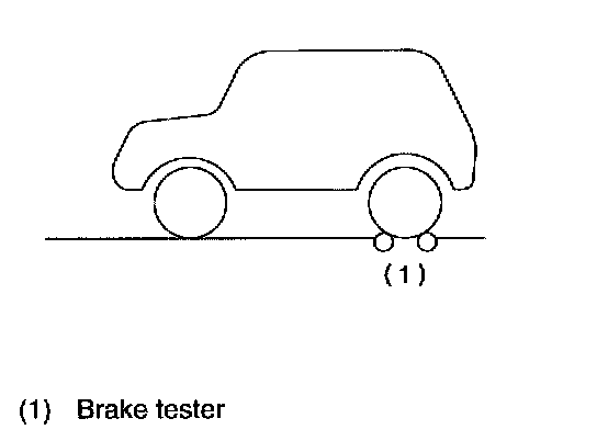 3) Set the front wheels or rear wheels on the brake tester and set the select lever's position at "N" range.
