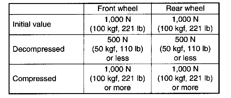 7) Read values indicated on the brake tester and check if the fluctuation of values, when decompressed and compressed, meet the standard values.