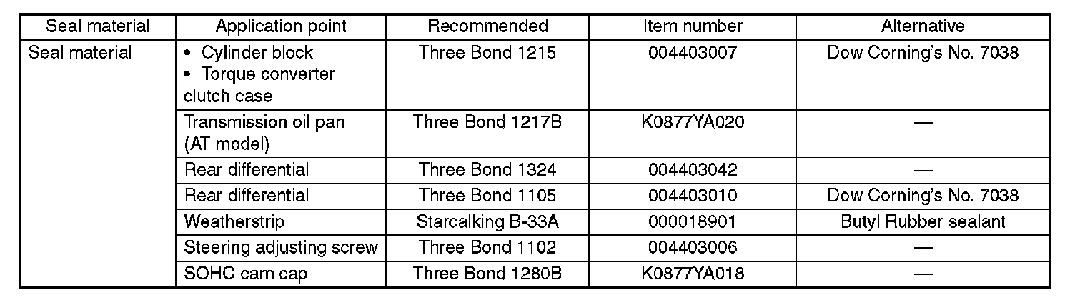To insure the best performance, always use the specified oil, gasoline, adhesive, sealant, etc. or that of equivalent quality.