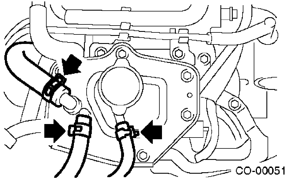 1. Drain the coolant about 3.0 L (3.2 US qt, 2.6 Imp qt).