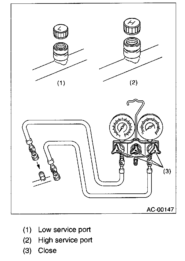 1. Close all valves of manifold gauge.