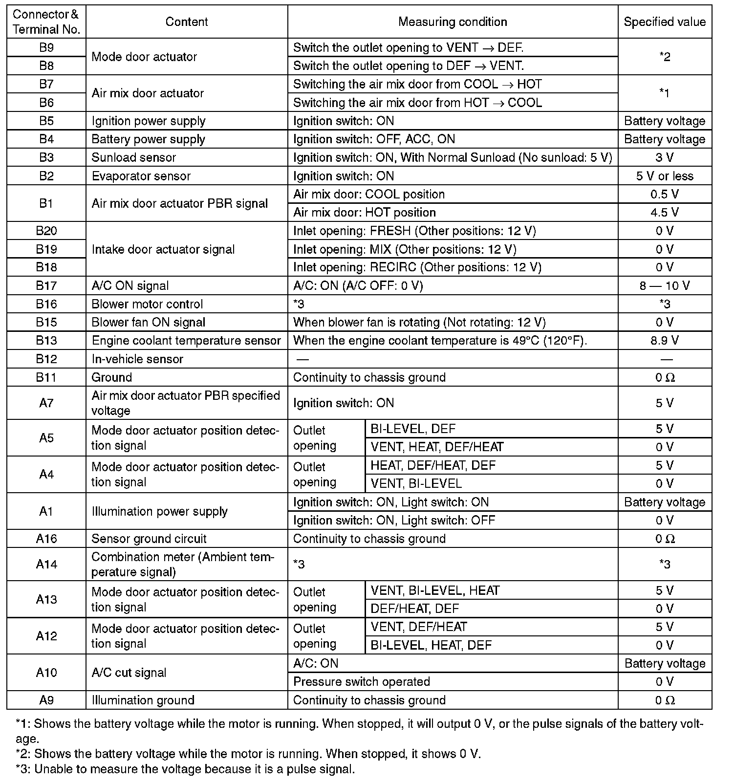 Auto A/C Control Module I/O SignalELECTRICAL SPECIFICATION