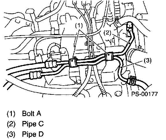 NOTE: Visually check that the hose between tank and pipe D is free from bending or twisting.