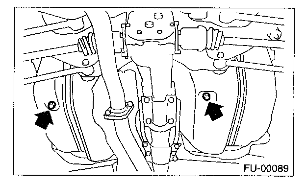 3. Drain the fuel from the fuel tank. Set a container under the vehicle and remove the drain plug from the fuel tank.