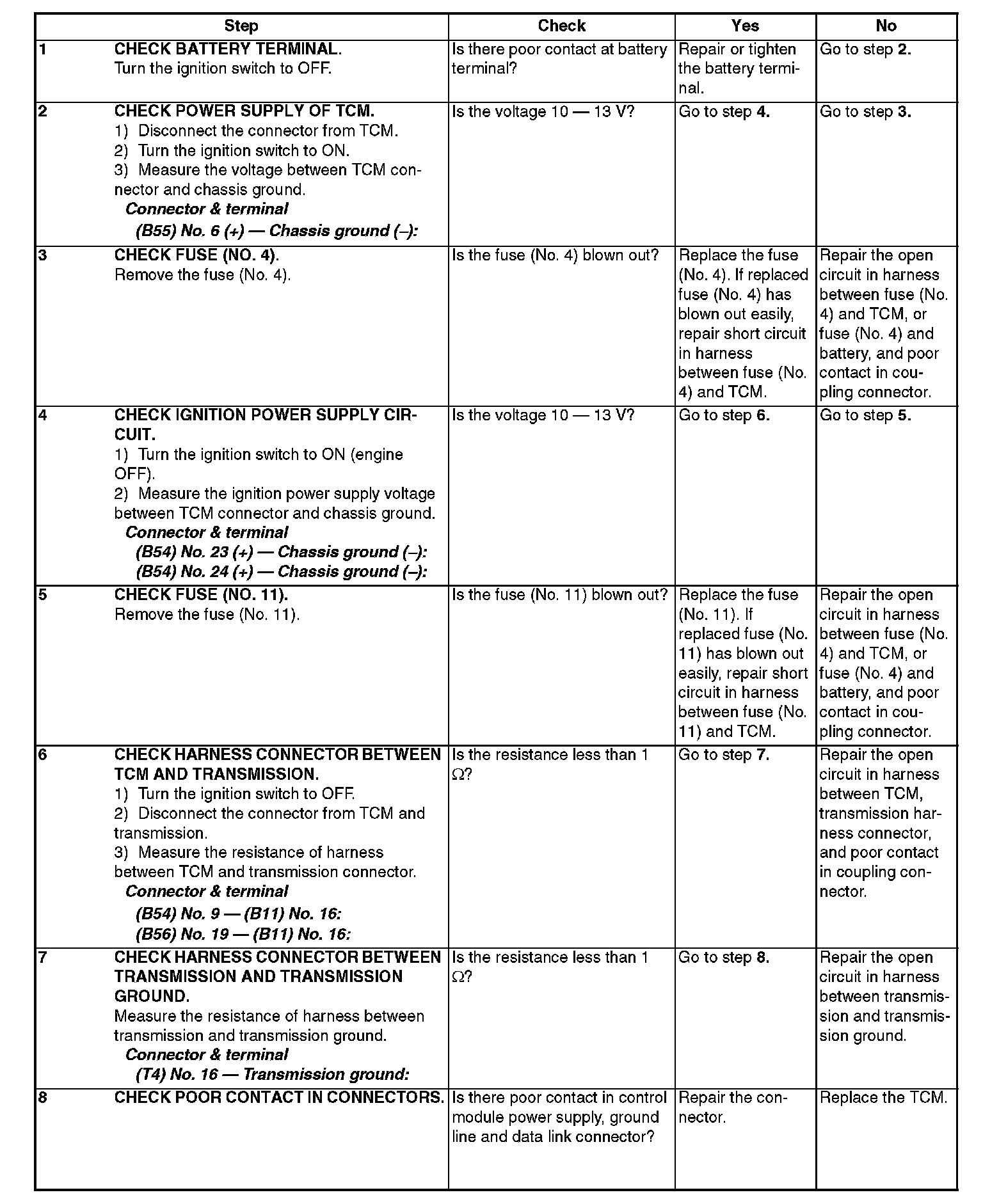AT OIL TEMP WARNING LIGHT DOES NOT COME ON OR GO OFFSteps 1-8: