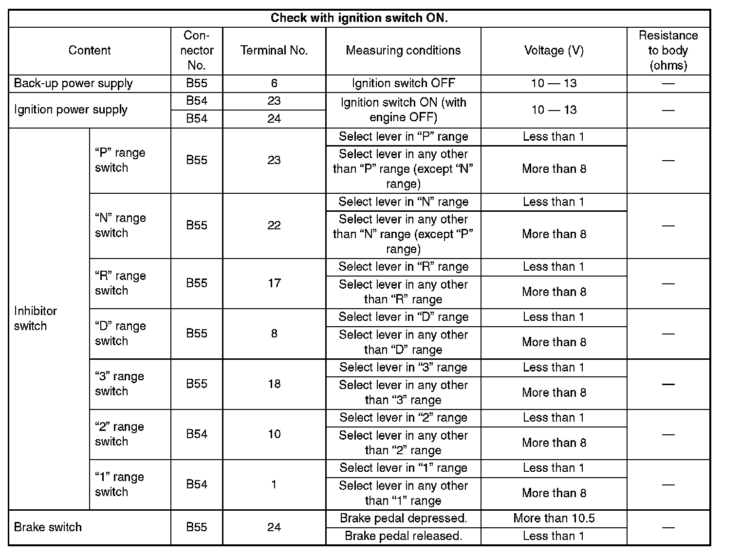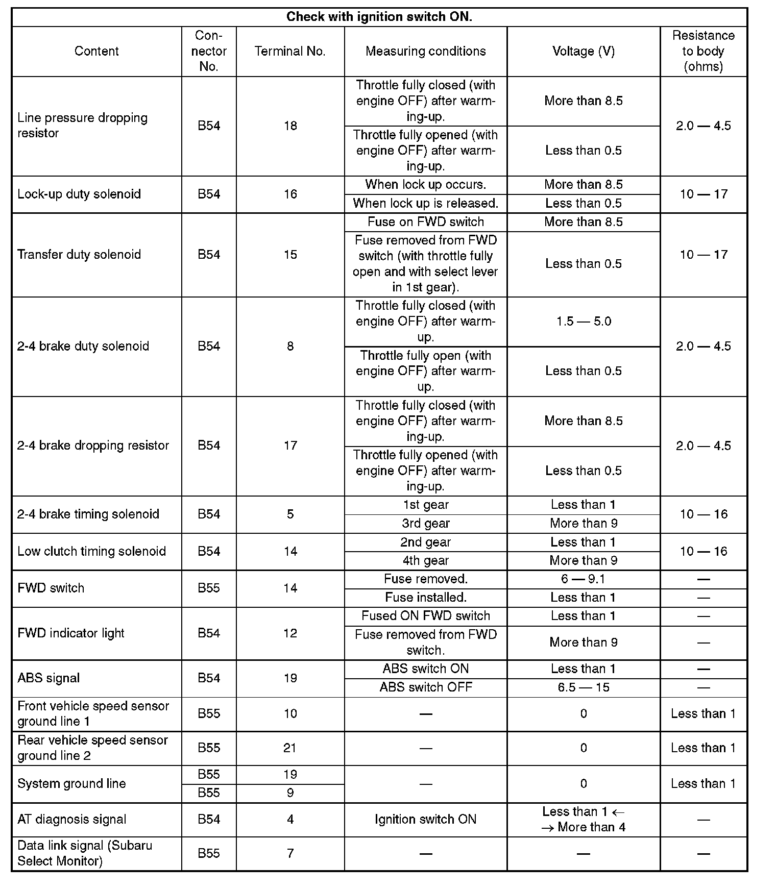 Pinout Values and Diagnostic Parameters