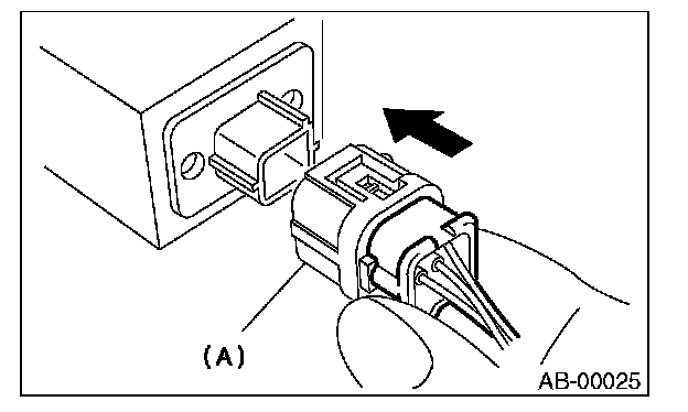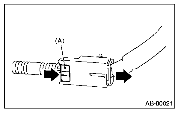 2. With the lock arm (A) pushed in, pull the connector in the direction of arrow, and then disconnect the connector.