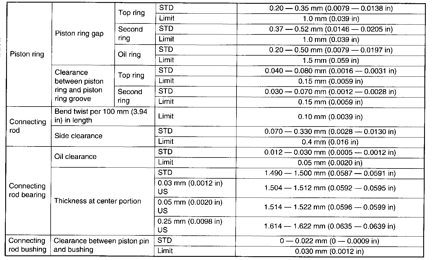 STD: Standard I.D.: Inner Diameter O.D.: Outer Diameter US: Undersize OS: Oversize