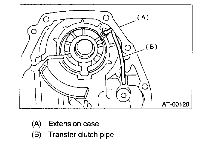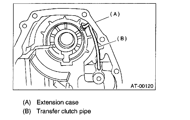 3. Install the transfer clutch pipe to extension case without bending pipe.