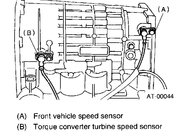 6. Install the front and rear vehicle speed sensor, and also the torque converter turbine speed sensor, and then fasten the harness.