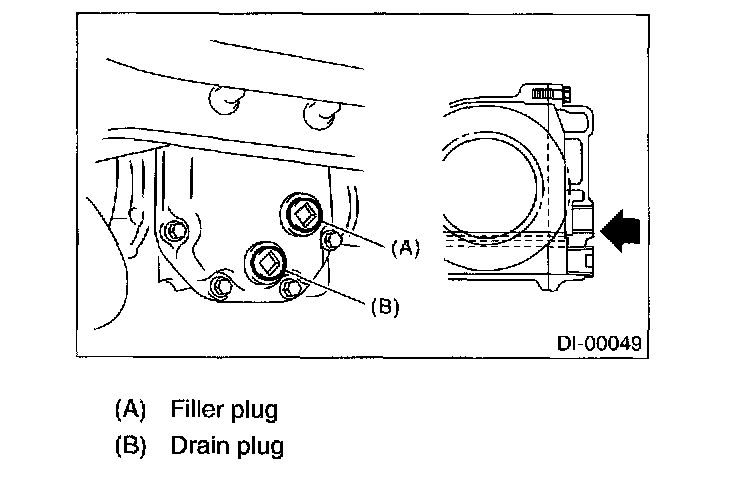 2. Check the gear oil level is up to the bottom part of filler bolt. If the level is low, refill up to the bottom of filler bolt.