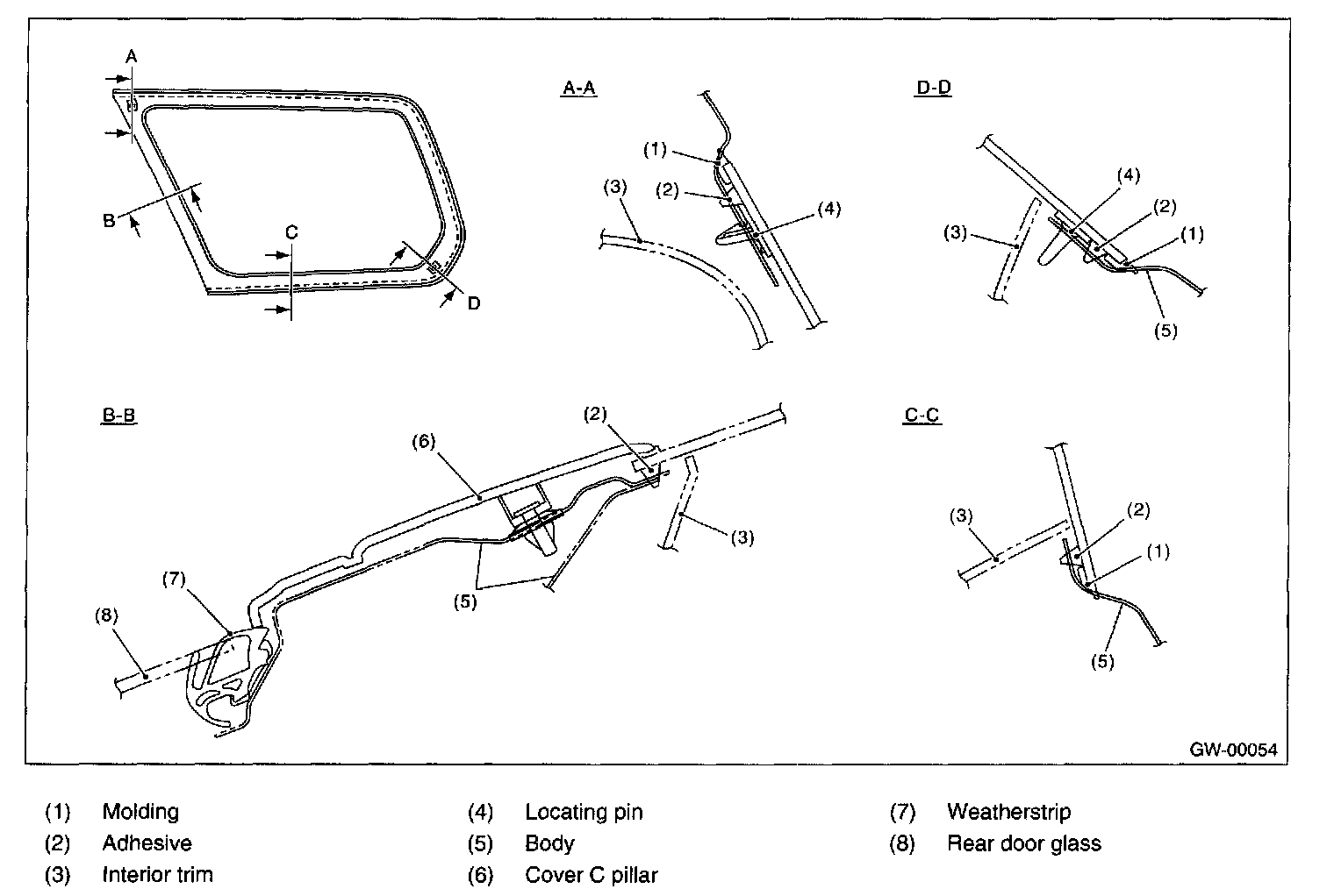 REMOVALRemove the glass in the same procedure as for windshield glass.