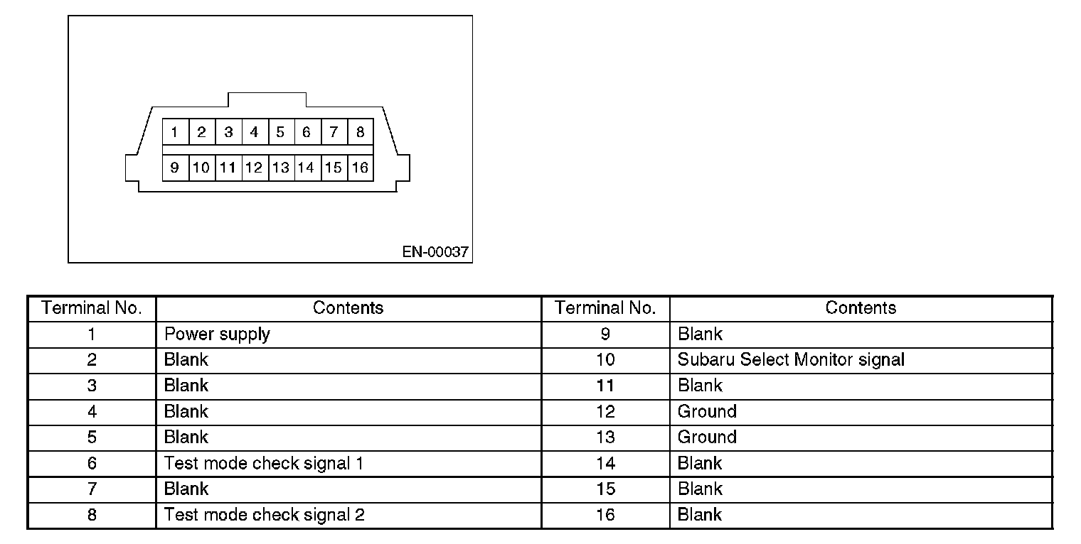 Data Link ConnectorNOTE: This connector is used both for OBD-II general scan tools and the Subaru Select Monitor.