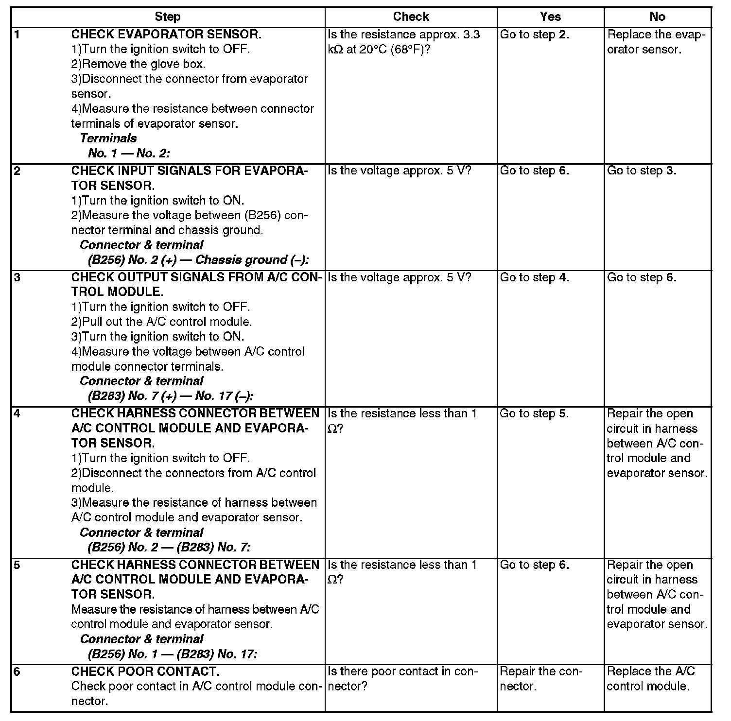 Evaporator Temperature Sensor / Switch: Testing and Inspection