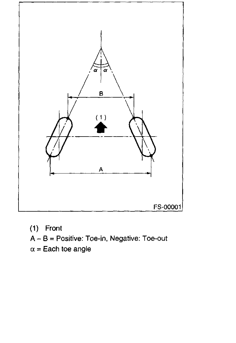 ^ Front and rear toe-ins and front camber can be adjusted. If the toe-in or camber tolerance exceeds specifications, adjust toe-in and camber to the middle value of specification.