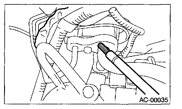 11. Disconnect the drain hose from the evaporator case, and check the hose end for at least 10 seconds. After the test is finished, reconnect the drain hose.