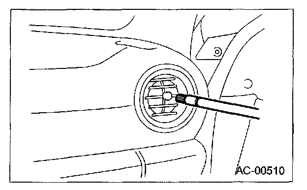 12. Turn the ignition key to ON position, and run the blower at high speed for 1 minute. Stop the blower to check the ventilation grille on the instrument panel. While moving the tester closer to the grille, run the blower for 1 or 2 seconds, then stop it. Check the grille at that point for at least 10 seconds.