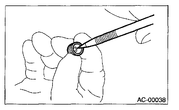 8. Check the compressor shaft seal at the area near the center of compressor clutch pulley. Some shaft seals show a slight amount of leakage about 28 g (1.0 oz) per year. This is not a problem.